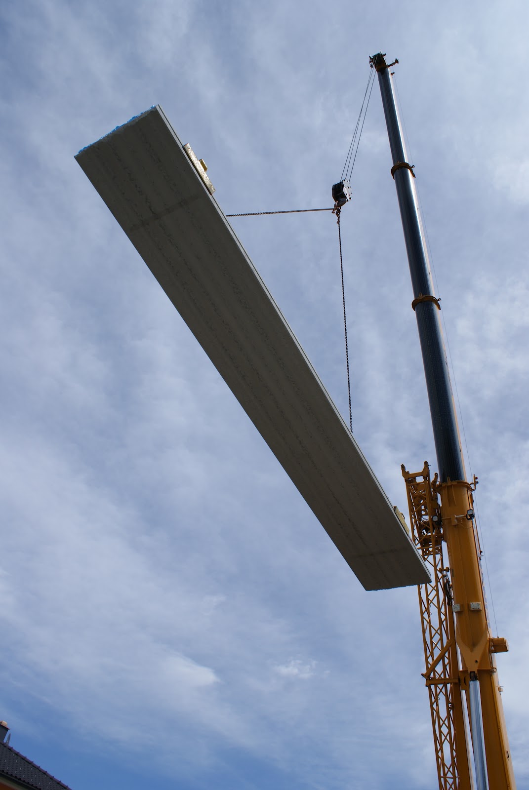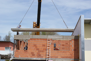 Die fliegenden Decken ;-) wer immer schon mal wissen wollte, wie Deckenelemente rauf aufs Haus kommen: Bitteschön