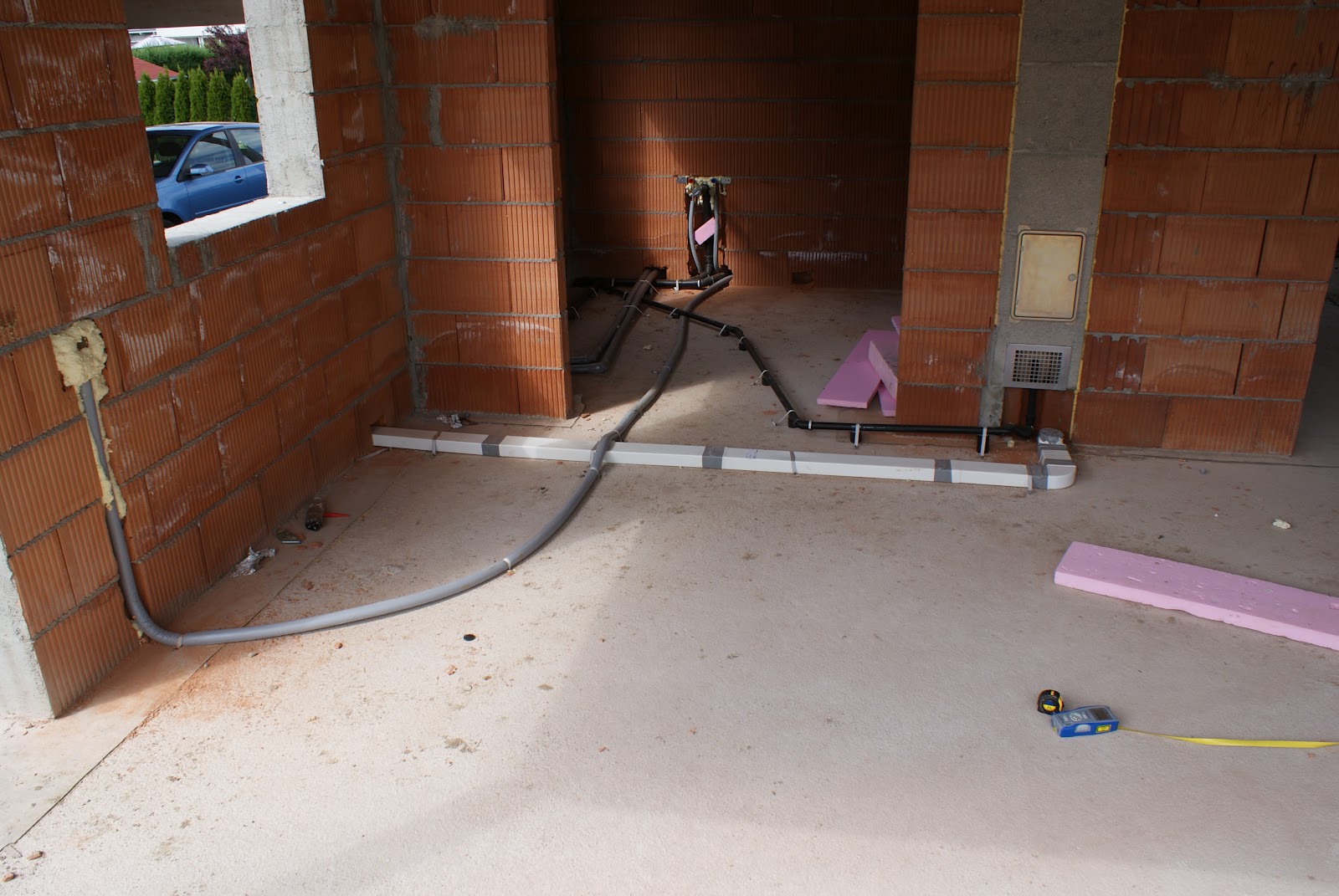 Der Estrich ist drinnen un trocknet aus bzw. wird gerade ausgeheizt