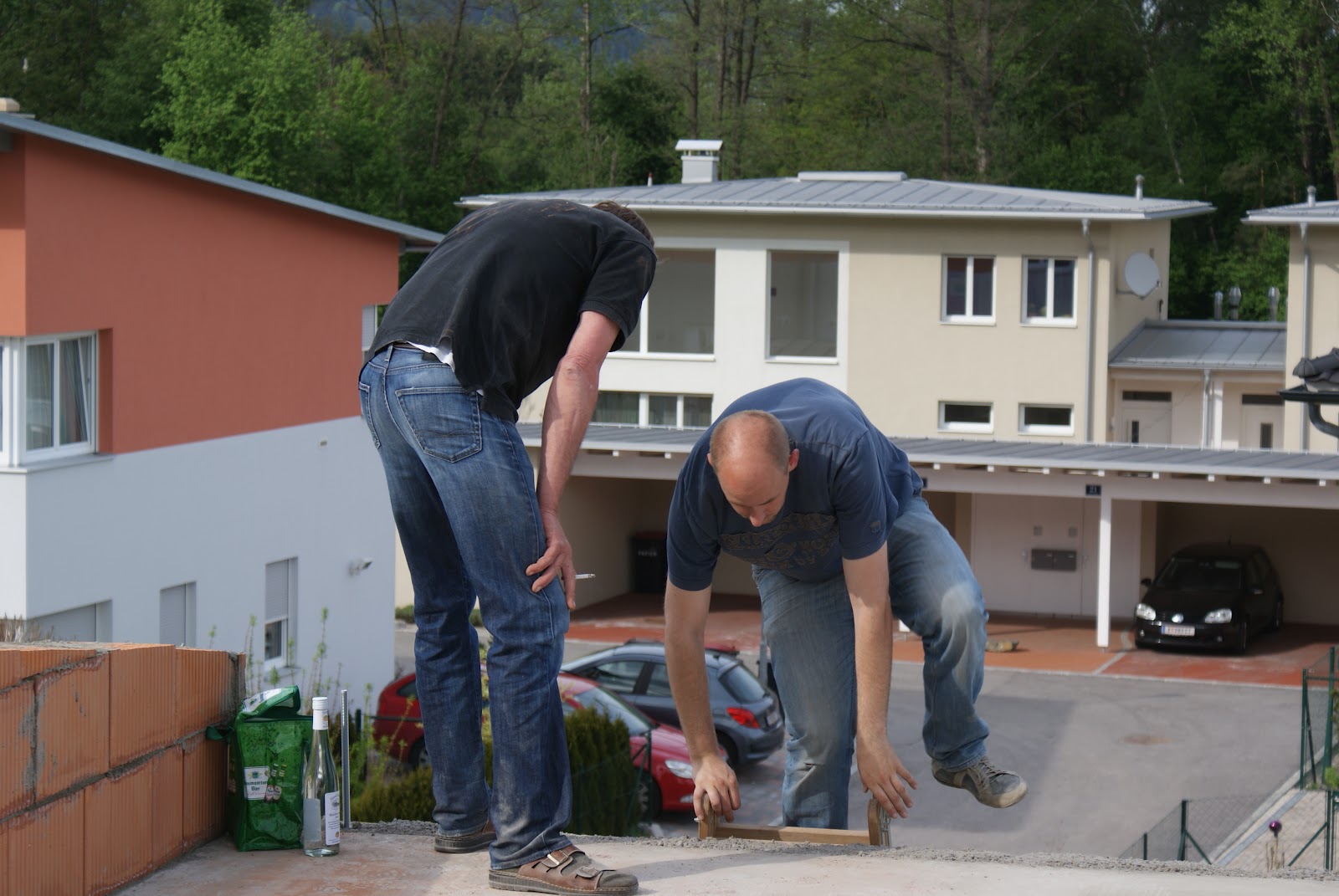 Wir haben heute pünktlich vor dem Einsetzen des Regens um 18:30 die Bodenplatte vollendet und die Terrasse ebenfalls. Somit gehts jetzt dann weiter mit dem Rohbau - Wahnsinn!